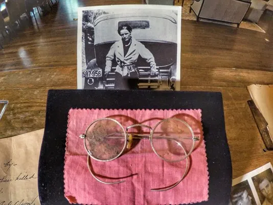 The artifacts were brought to Dallas Monday to be put on display. They include a set of bloodstained eyeglasses Bonnie wore when she was killed, the original Dallas County arrest warrant for the two, and a three-headed snake ring Clyde made for Bonnie.