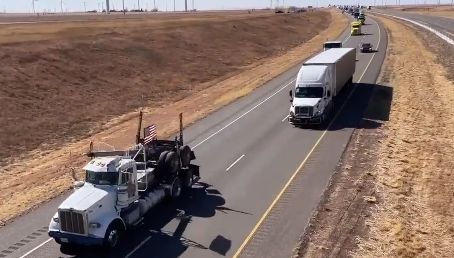 The convoy passed through the Lone Star State along Interstate 40 on Friday, staying the night in Glenrio. Truckers were surprised to see so many Texans come out in support. Truckers are protesting COVID-19 restrictions and want all mandates ended.