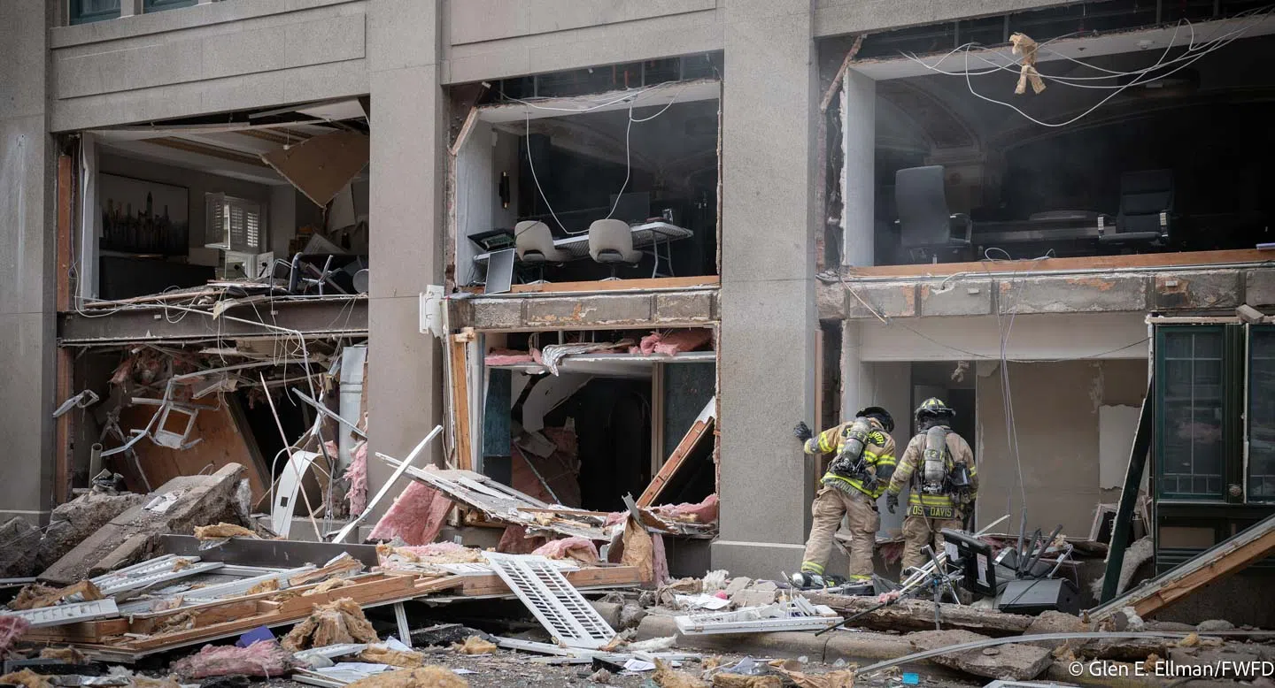 FORT WORTH (WBAP/KLIF News ) – A number of agencies are working to identify the cause and assess structural damage from the explosion at the Sandman Signature Hotel in downtown Fort Worth Monday afternoon.