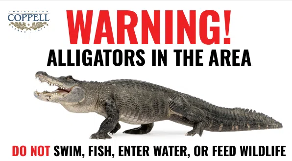 DENTON (WBAP/KLIF News ) – The City of Coppell is warning residents to be on alert after an alligator was spotted in the northeastern portion of the town.