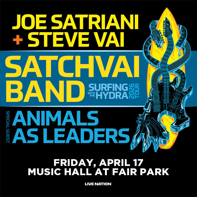 SatchVai Band featuring Joe Satriani and Steve Vai- Surfing With the Hydra 2026 Tour is coming to Music Hall at Fair Park on April 17th. Get tickets and information HERE