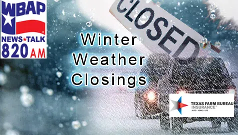 WBAP’s Closings and Delays Below is a list of schools, churches and other organizations that have changed their schedules due to inclement conditions. Stay tuned for the latest in the changing w...