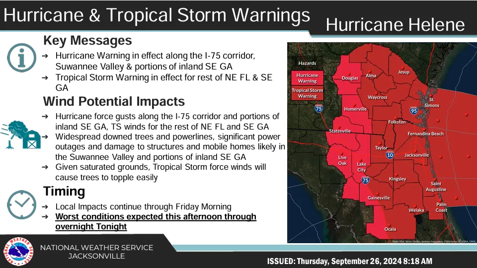The governor said Helene’s effects are already being felt in the southern part of the state. Overnight, there were 14 different tornado warnings with more likely today.